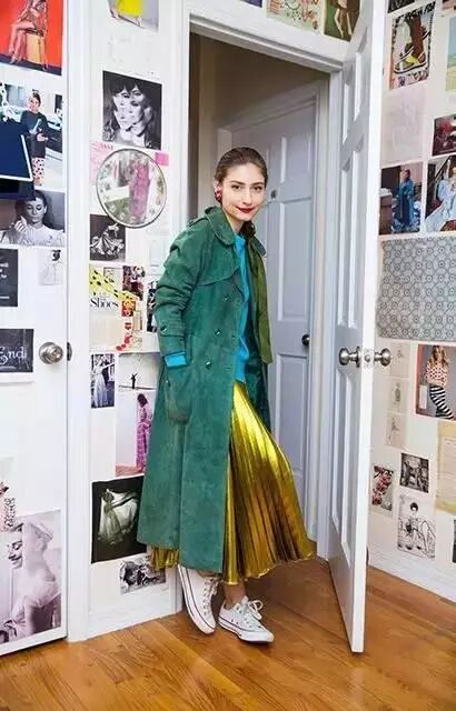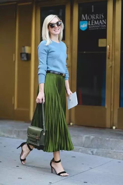 风琴裙是早春的必备单品,蓝配绿的撞色优雅大气,尤其是今年流行这种墨绿色,跟你们的年度色彩静谧蓝搭配出了色彩新高度。