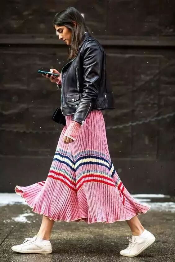 风琴裙可不仅仅是清纯可人学生装的代名词,在潮人的眼中,风琴裙就是一条经典百搭遮肉显瘦凹造型的神器!细密的褶子搭配秋冬的毛衣轻松让腰间的赘肉隐形。
